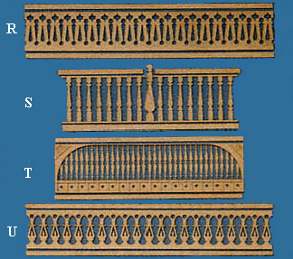 R. Porch Rail 12"L x 2 5/8"H PR-045…$21.20 S. Painted Lady Rail 8 3/4"L x 3 1/8"H PR-041…$15.95 T. Porch Rail 9 3/8"L x 2 1/2"H PR-042…$30.50 U. Porch Rail 12"L x 2 1/8"H PR-040…$21.20